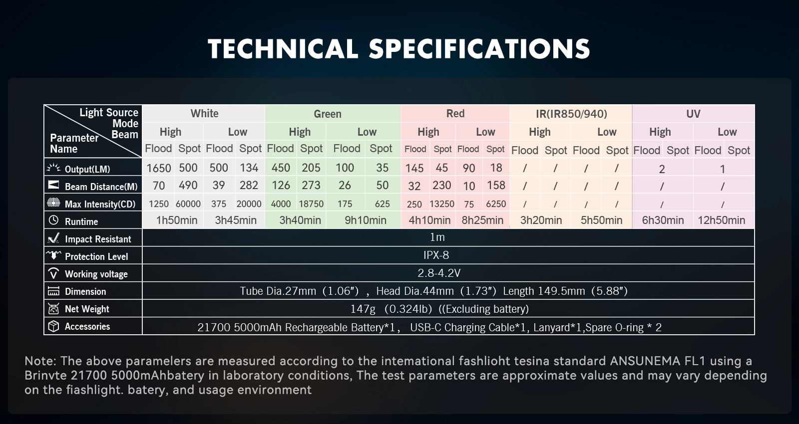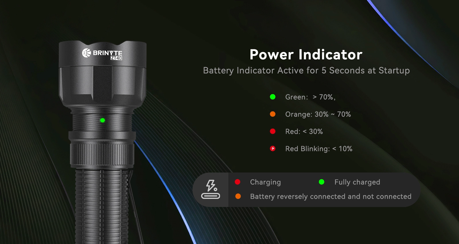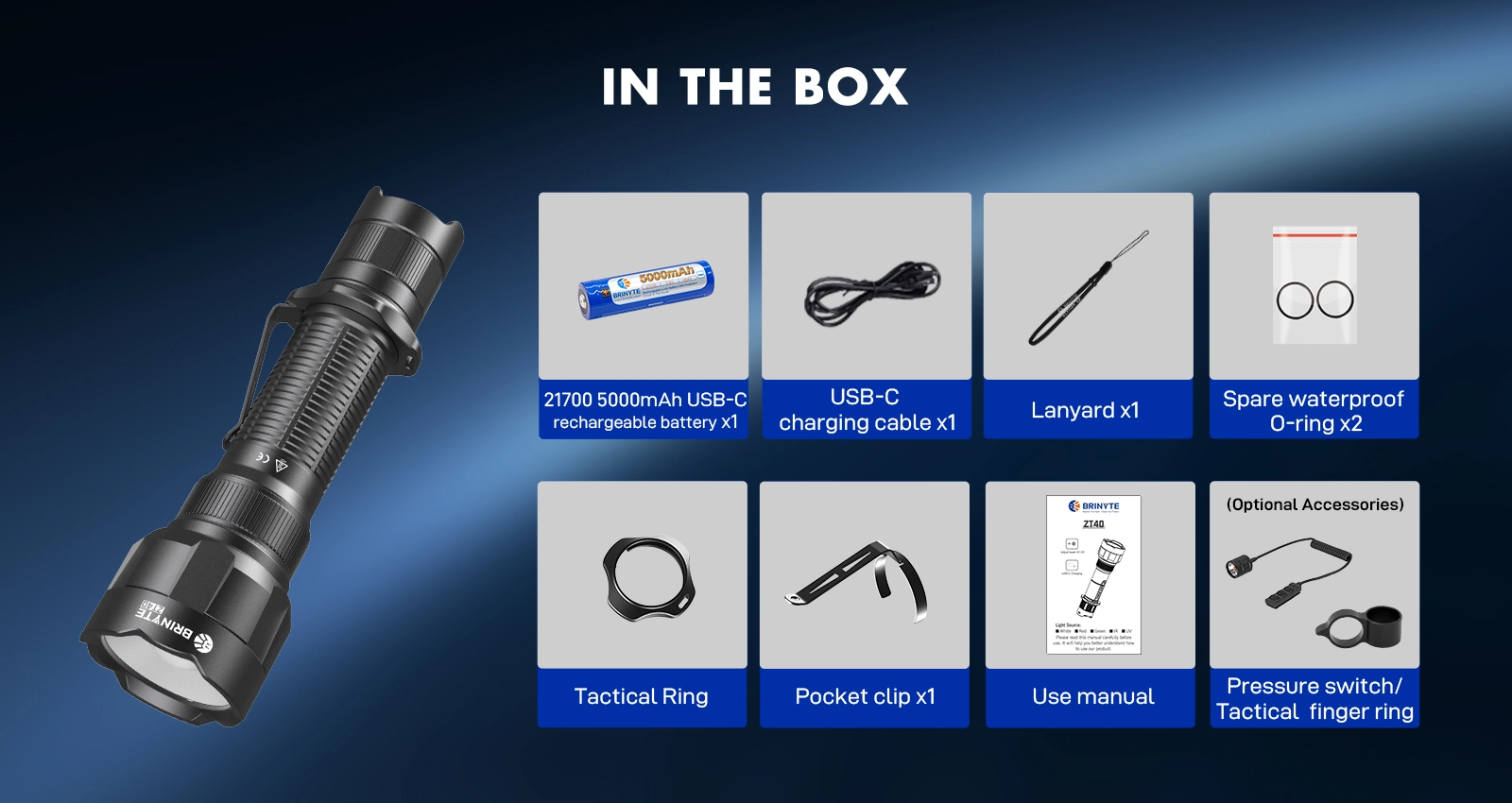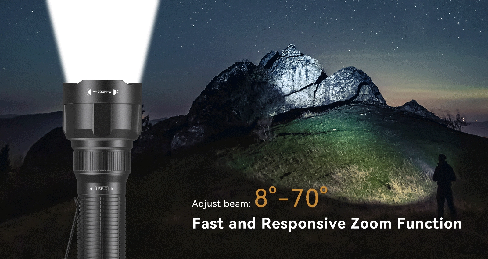 The Brinyte ZT40 is a high-performance flashlight designed for tactical operations, law enforcement, hunting, and outdoor exploration. With a powerful 1650-lumen output and an impressive 490-meter beam distance, it provides clear and bright illumination in any environment. The ZT40 features adjustable focus, allowing seamless switching between a 6-70° beam angle to accommodate both long-range and floodlight needs.