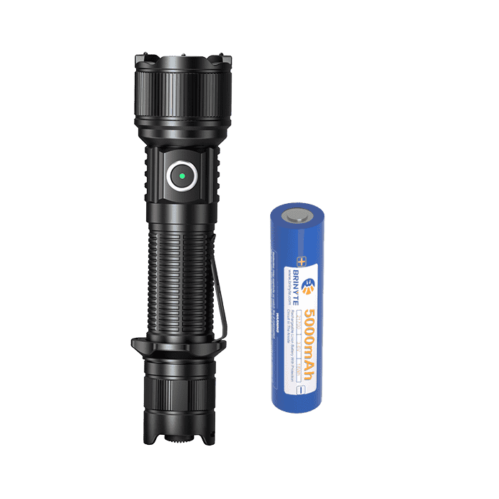 Brinyte PT16A 3000 is an upgraded tactical rechargeable flashlight. It uses a Luminus LED, with a 3000+lumens max beam. The beam intensity reaches 52,500 candela and the range can reach up to 458+meters. It comes with a Brinyte 21700 lithium-ion rechargeable battery with a USB TYPE-C interface. The tail switch and front button switch make it easy to operate.